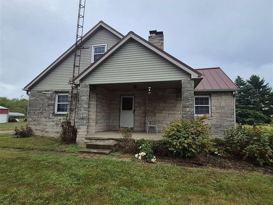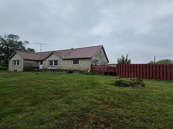 Up a lane sits a beautiful limestone home on large lot in Modoc, IN with detached garage, full basement (with 2 entrances), metal roof and awesome porch. Huge bedrooms, updated kitchen with city sewer but private well. Central air and gas forced heat. 4- 5 bedrooms with 2 full bathrooms.