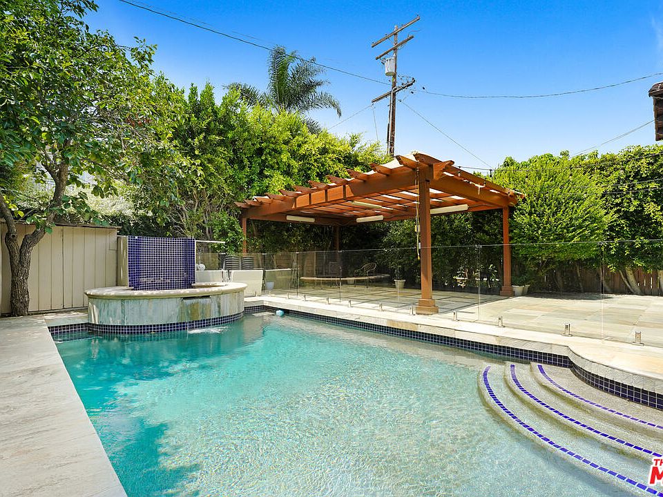 Architectural Mediterranean Villa with 2-levels of exquisite living & entertaining areas in desirable Beverly Hills. The gated villa features a great for entertaining open floor plan with living & dining areas, family rooms with fireplace, grand chef's kitchen with high end appliances, large center island with breakfast bar and a separate breakfast nook all with access to the stunning backyard. Step outside to a sparkling swimming pool, a spacious patio with a shaded pergola, and beautifully landscape greenery that creates a private oasis, perfect for lounging or hosing gatherings. Also, the main floor features a bedroom suite and a separate library/office and a guest's powder room. The second floor features 4 bedroom suites, including a master suite with dual walk-in closets and dual luxurious bathrooms and a side by side washer and dryer with cabinetry. Prime location of Beverly Hills close to La Cienega Tennis Center with 16 courts and La Cienega Park and all the top restaurants and most famous shopping streets. Enjoy the Beverly Hills Lifestyle!