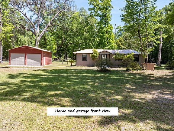 This move-in ready home is positioned on a large, cleared lot and will make a great starter home or an income producing rental. Located just a short drive from River Rise State Park, the Santa Fe River, Rum Island and Downtown High Springs, this home is ideal for those who value outdoor recreation opportunities, but don't want to be too far from "civilization". Features- New Roof(2024) Recessed Lights Eat-In Kitchen With Plenty of Cabinet Space, Laundry Room, Luxury Vinyl Plank Floors Large 2 Car Detached Metal Garage, Back Deck, Rear fenced, partial fencing around entire property, Fire Pit, Mature Landscaping, Recently replaced HVAC and Water Heater(2022/2019), Coded Front Entry, 20X20 slab on property offers for larger than existing shed storage. Home was under contract, buyer's financing was rescinded. Owner financing available.