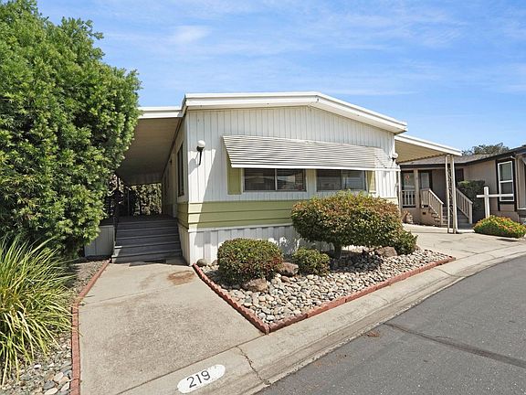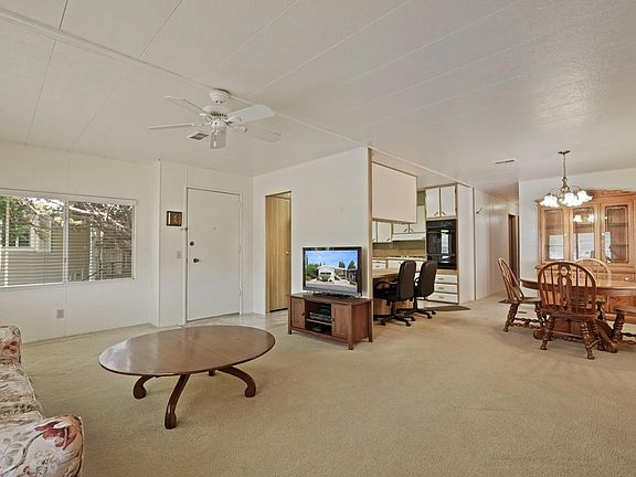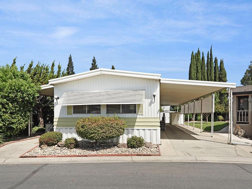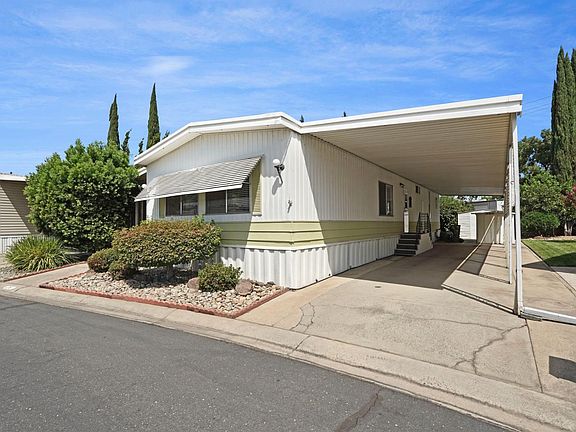 Excellent well cared for mobile in Lodi's most desirable mobile home park. Super lot location in quiet corner close to the clubhouse. Open plan with good sized Great room. Large kitchen with new dishwasher, garbage disposal etc. New AC on property and other special features. Large front porch with extra yard space with seating bench. Large covered carport with 2 storage sheds. Nice setting to relax. Inside laundry room with cabinets. Main bedroom has 2 closets and bath has walk in shower. This is a must see.