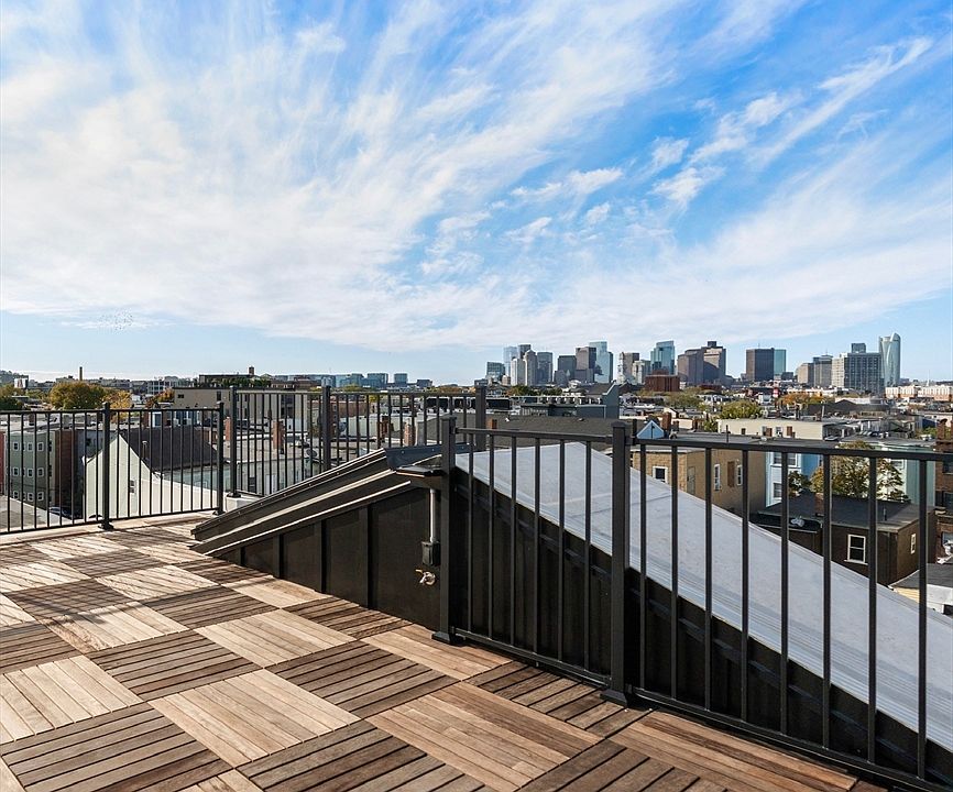 Construction completing next week! Welcome to “Penthouse South,” the south facing 3-bed, 2-bath duplex (1,145 SF + private 250 SF roof deck) at The Sara, East Boston’s most architecturally distinctive new build defined by its sculpted façade and adjacent public art. PH-South captures sweeping downtown skyline views and abundant natural light. The open-concept top floor combines living, dining, and kitchen into one dramatic entertaining space, framed by custom millwork, wood cabinetry, soapstone counters, and curated accent lighting. Upstairs, a private roof deck offers an outdoor living room in the sky—perfect for dining, lounging, or skyline sunsets. 9’2” ceilings, spa-like baths, and a rare gated park in the rear across multiple parcels features upper and lower lawns, grilling area, and pet zone. Just 0.3 mi to Blue Line and Greenway. Ready for occupancy in days.
