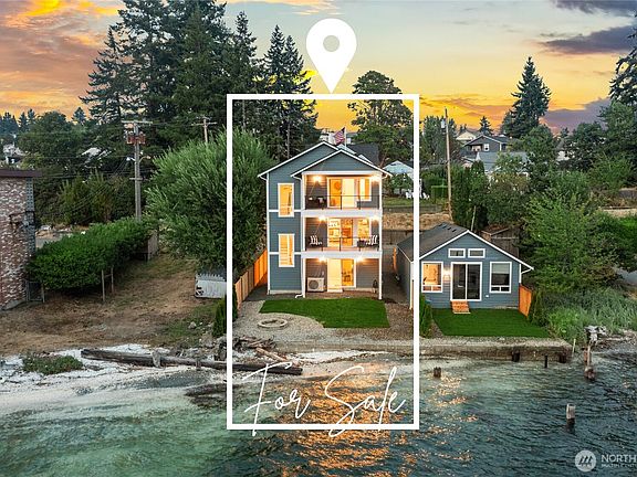 Brand New 2025 Waterfront Home + Optional Beach Cottage with Proven Rental Income! Enjoy west-facing sunsets and direct Sound access from this newly built no-bank waterfront home on Shore Drive in Manette. Tideland ownership, vaulted ceilings, Milgard windows, gas fireplace, and high-end finishes throughout. 3 bed, 3.5 bath, all en-suites—including spa-style vaulted primary bedroom. Walkable to Seattle Fast Ferry, for easy city commute, enjoy the cafés, shops, restaurants in Manette, with direct paddle board/kayak and beach access! EV Charger, Tankless and side mount garage opener! Bonus: Optional beach cottage with strong Airbnb history ideal for guests, multigenerational living, or rental income! 2-10 Warranty included!