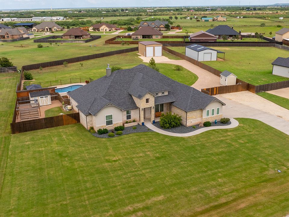 Welcome to this stunning home in the highly sought-after Wylie West school district! With 4 bedrooms, 2.5 baths, and soaring ceilings, this home offers both space and style. Gorgeous hardwood floors flow throughout, adding warmth and character. This home is full thoughtful details—wood beams add richness to the living area, while wainscoting in the formal dining room adds a classic touch. Every space reflects careful design and craftsmanship. The kitchen is perfect for both everyday living and entertaining, featuring a large island, gas cooktop, pantry, and a built-in coffee bar. A cozy gas log fireplace anchors the open living area. The second living room with a half bath makes casual entertaining easy and fun. The utility room includes built-in cabinets, a sink, and two hot water heaters for extra convenience. The spacious primary suite is a true retreat with separate vanities, a soaking tub, walk-in shower, and a generous walk-in closet. Step outside to your backyard oasis—complete with a covered patio with ceiling fans, a 15,000 gallon plaster pool (built in 2019) with an in-floor cleaning system, chlorine and ozone setup, and an oversized swim deck. You’ll love the firepit area, covered deck, raised bed garden, updated landscaping, and 2 storage sheds. And for your toys or hobbies, there’s a RV garage with 960 square feet with 2 14' doors and wired with 200amp service panel and a 500-gallon buried propane tank near the side gate. This one-of-a-kind home truly has it all—come see it for yourself!