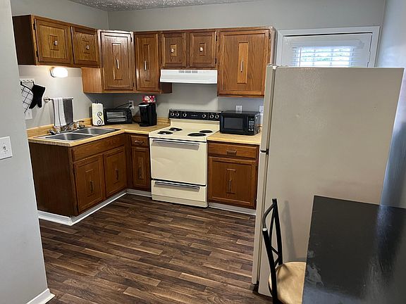FREE WIFI This apartment was just remodeled with brand new paint throughout, a new central heating and air HVAC unit, new bedding, new flooring, and leather dual-reclining sofa in the living room. This rental includes a complete kitchen with all of the necessities, from pots and pans down to silverware, and a full-size stove & refrigerator, and charcoal grill for your use on your private, covered, back patio! We have supplied everything down to the hangers to hang your clothes on inside of full-sized closets with dressers in both bedrooms. There is a smart TV in the living room and both of the bedrooms, with a DVD player at all 3 TV\'s to watch your favorite Red Box movies on. There is a digital lock and once inside you have an extra security door lock.