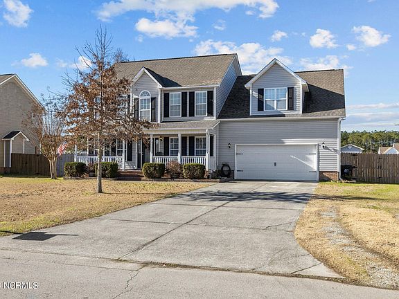 THIS HOME HAS IT ALL! Beautiful and spacious both inside and out, the fine two-story Traditional at 219 Target Ln, Hubert features three bedrooms, two and one-half baths and a bonus room. Downstairs, the home is graced with gleaming LVP flooring, both formal dining (wainscoting and tray ceilings) and causal dining (a breakfast nook), a formal living room or den, and an inviting family room. The gas fireplace with a marble surround is the focus of this room. The cheerful kitchen features stainless steel appliances and a dining counter, and is the hub of the home. Also on this level is the sizable laundry room. Upstairs there is plenty of room for sleep and play, with three generously-sized bedrooms, one being the master with an ensuite and walk-in closet. This level also features the considerable bonus room which contains a sleeping alcove. Outside, there is a rocking chair-ready covered front porch, and the broad, open deck out back is perfect for grilling out. The fenced-in backyard is secure and kid-friendly, and includes a garden shed. The double car garage completes the picture. This home is convenient to the Hwy 172 gate of Camp Lejeune, the sea-side town of Swansboro and it is only 20 minutes or so away from the beautiful beaches of the Crystal Coast! Arrange now to take a closer look; offered at $330,000.