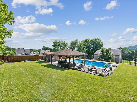 Updated 4-bedroom, 2.5-bath home nestled on a private, fenced, tree-lined lot in Natrona Heights. Step into your backyard oasis with a view—featuring an inground swimming pool, pavilion, firepit, pool house, & a hot tub just off the covered back porch. Inside, the eat-in kitchen boasts granite countertops, a custom island, & ample cabinetry, with an adjacent dining room featuring a bay window. The large & airy family room offers a focal point fireplace. Gleaming hardwood & ceramic flooring are sprinkled throughout the home. The main floor also includes a versatile 4th bedroom or den & a spacious 1/2 bath. Upstairs, the generous owner's suite features a luxurious en-suite with a tiled glass-door shower. Upstairs allows direct access to the covered porch, where a bridge leads you to the backyard retreat. Two additional large bedrooms & an updated full bath complete the upper level. Don't miss this rare find that blends privacy, comfort, & resort-style amenities in a prime location.