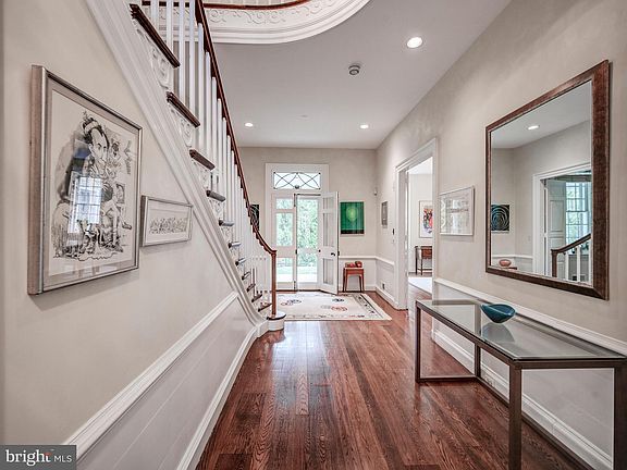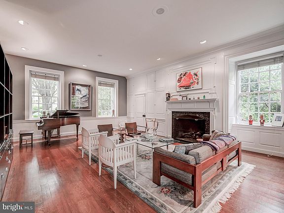 . Built in 1937 and lived in and enjoyed by the founder of T Rowe Price, this enchanting six bedroom, five and one half bath stone residence was modeled after the circa 1782 Dr. Barraud House in Williamsburg, Virginia. Thoughtfully designed for sophisticated entertaining and comfortable living, quiet sun-filled rooms with endless charm grace the multiple living spaces which are further enhanced by high ceilings, beautiful millwork, and wide board hardwood floors. The spacious and elegantly proportioned rooms present four gas and one wood fireplace, and abundant natural light through large windows and French doors.  A large white and granite cook’s kitchen overlooks a delightful stone walled breakfast room with full size arched glass cottage doors that open to a private courtyard where the original gas crab steamer is displayed. Situated on a large corner lot accented with stone walls, a captivating private yard overlooks serene landscaping and water features from a lovely, covered bluestone terrace.