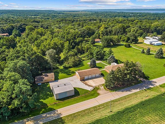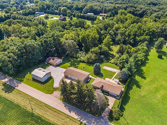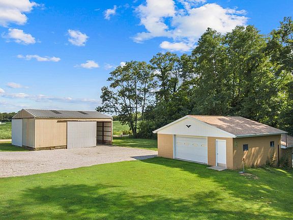 Not one but THREE Outbuildings (44 by 30, 60 by 30 and 40 by 30) and an incredible two bedroom, two bathroom home situated on five acres! The kitchen features solid surface countertops, stainless steel appliances, and solid wood cabinets. Wood burning fireplace in the living room, main floor laundry with additional hookups in the basement. Family room, second bathroom, storage space, and a possible third bedroom in the basement (no egress). Heated, attached 2 car garage, detached 4 car garage with in-floor heating and a half bathroom. Two additional outbuildings and RV parking with water access and clean out. Roughly three acres of the property are completely fenced. Enjoy the views of the park-like backyard from your hot tub on the back patio. Measurements not guaranteed