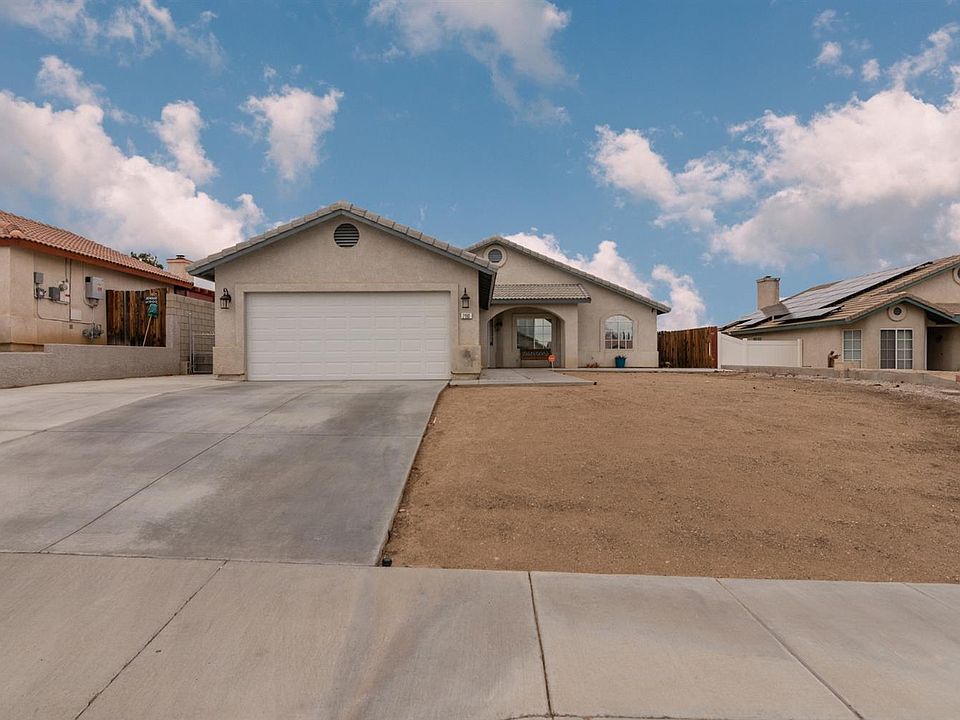 Beautiful House in one of Barstow's Finest and most desirable neighborhoods. Great Location with access to the desert and amazing sunset views. Single story house with 3 bedrooms and 2 full bathrooms. Really low energy bills. Ducted Mastercool AND A/C. Living room has romantic fireplace. Covered patio. Ceiling fans, Tiled Roof, new garage door opener and insulated garage door, HUGE backyard with new Chain Link across the rear with a gate, tiled entry, Faux wood blinds, updated panel doors, baseboards and Fresh paint in some rooms.