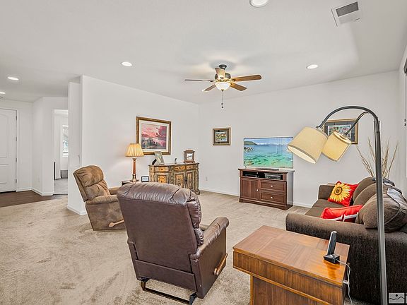 Beautiful Di Loreto Home in the La Casata community of Damonte Ranch. This stucco, single story home offers Green Certified standards, a low maintenance zeroscaped yard and a huge back patio with lights. Open kitchen with granite counters, large pantry, ceiling fan and upgraded cabinets offering soft closing drawers. Enjoy entertaining as the kitchen, dining room and family room are an open concept and offer easy access to the backyard. Master bedroom has 2 walk-in closets., The main suite offers his and hers separate vanities, two separate walk in closets and a walk in shower. Great neighborhood with easy access to walking trails, schools, shopping, restaurants, freeway and Veterans Parkway. This home is ready for a new home owner.