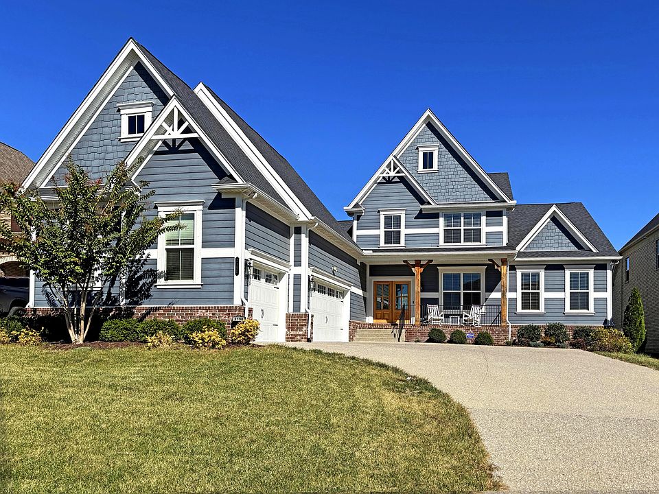 Step inside and you’ll immediately notice the gleaming hardwood floors, wainscoting, and an abundance of natural light. The chef’s kitchen is the heart of this home, featuring upgraded cabinetry, premium appliances, stunning light fixtures, under cabinet lighting and a large island perfect for entertaining or gathering with family. Open to the great room with soaring ceilings, custom beams and a welcoming fireplace. The large main-level owner’s suite with a tray ceiling, accent wall & in-ceiling speakers offers a quiet retreat with luxurious upgrades including a freestanding tub, and beautiful tile & glass shower. The guest suite, also on the main level, provides ideal accommodations for visitors or extended family with its own ensuite bath.