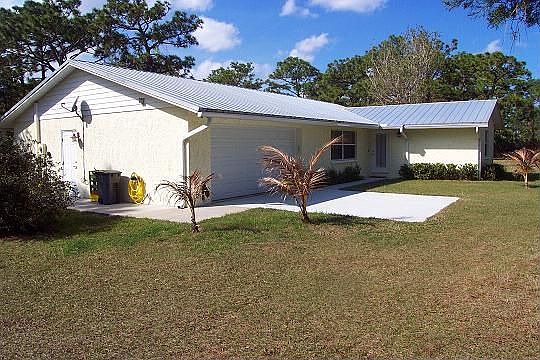 Completely redone!!!Gutted down to concrete block.All new as of 2007:METAL ROOF!!,windows, electric,Trane A/C,French doors,Kohler fixtures,Baldwin locks, ceramic tile,carpet,granite kitchen counters,tiled bathroom counters,custom base boards,security system,water treatment/softener & more!!Property has attached 2 car garage + an 840 sq ft out building with garage door & electric