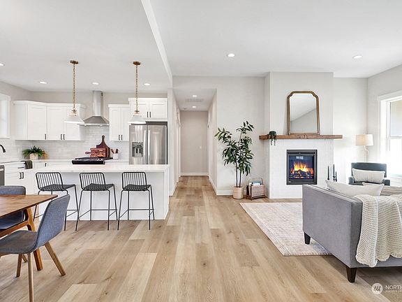 Beautiful new move in ready home with a 3 car garage! This single level home features 3 bedrooms & 2 full baths. Upgrades including, Luxury Vinyl plank flooring throughout, white shaker cabinets, quartz counters, tile backsplash, stainless appliances, walk in pantry, cozy gas fireplace and air conditioning. Primary bedroom with attached bath, dual sinks, freestanding tub, beautiful tile shower and walk-in closet. Generous size linen closet in main bath. Large covered back patio for year round BBQ's and sunsets. Conveniently located near shops, schools, and parks.