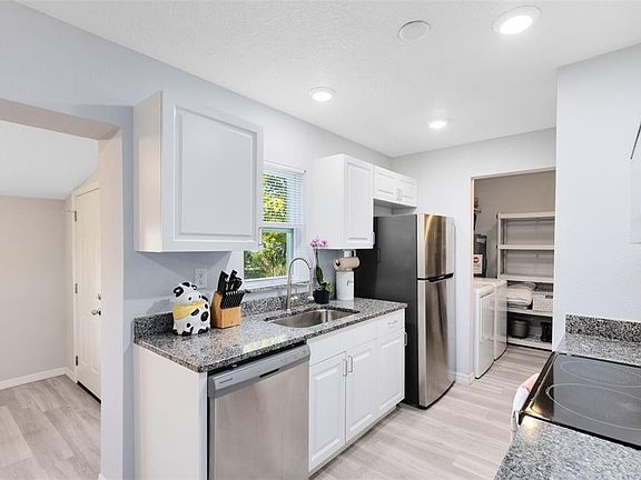 Move in ready. This beautiful 3 bedroom plus office or den, 1 bath home was fully renovated in 2020 and offers modern updates, a bright interior and a large private yard, all minutes from downtown Orlando and major commuter routes. Inside, every surface feels fresh and practical. The open floorplan connects the living and dining areas with a newly renovated kitchen featuring granite countertops, stainless steel appliances, white shaker cabinets and recessed lighting. The pantry and laundry area add functionality and storage, and the washer and dryer are included. A bonus flex room just off the kitchen works perfectly as an office, den or gym area. The home’s flooring was replaced in 2020 with durable luxury vinyl plank throughout, giving a cohesive, easy to maintain look. The bathroom was also fully remodeled in 2020 with a new vanity, toilet, fixtures and flooring, etc. The neutral interior paint and updated lighting keep the home bright and welcoming. Outside, all major work was done where it matters most. Upgrades completed in 2020 include a new roof, new HVAC system and ducts, new water heater, upgraded electrical panel, double pane energy efficient windows, new exterior doors and full exterior stucco and paint. The large fenced backyard offers privacy, mature trees and plenty of space for outdoor living or future expansion. Located in Richmond Heights, an established Orlando community with quick access to downtown, Camping World Stadium, the John Young corridor and major highways, this home offers convenience while still tucked into a quiet residential street. Review the 3D tour, floorplan, survey and upgrade list in the listing to get a complete picture of the home before your visit. With its central location and full 2020 renovation, this home is easy to preview and even better to see in person.