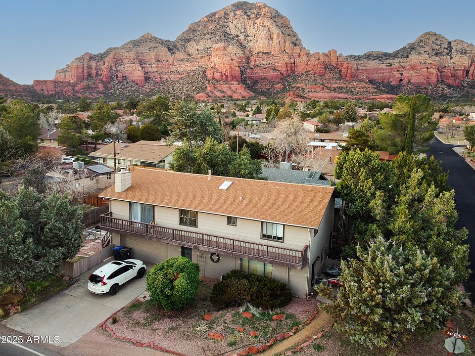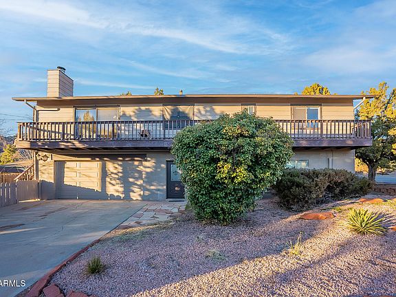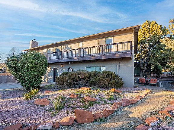 Tons of potential with this centrally located, 2,247 sqft home that is close to all West Sedona has to offer. Trailheads, shopping, and grocery stores are all minutes away. The 2 story house features the main living area on the second floor, with 2 beds / 2 baths. The great room has vaulted ceilings, red rock views and decks in the front, back and side of the home. On the first floor is an in law apartment with its own entrance and parking, full bathroom, kitchenette, and washer/dryer. The roof was replaced last year, and the deck stairs and front deck are brand new. No HOA or rental restrictions, buyer to verify.
