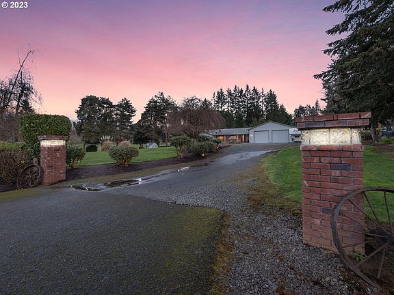 Single level living with room to roam and room for toys! Light & bright one level on beautiful 1-acre lot. Spacious, open great room floorplan with two bedrooms one each end of the home! Great view to backyard w/patio, waterfall & gazebo. Kitchen has gas cooktop and plumbed for future electric option, tile counters, peninsula seating. Great room w/custom built-ins, media closet for easy media connections, gas fireplace, skylights, durable tile floors. The primary suite has walk-in closet, new walk-in shower, slider to workout or spa room and back patio. Plus - a Must See garage w/10' commercial doors, LiftMaster openers, 3-phase 220 electric. RV and generator hook-up. High-speed Internet. Ski-enthusiast?? just 50 Min to the Mountain! 12 minutes to shopping in H. Valley or Gresham. Room to roam yet not to far away from city conveniences!