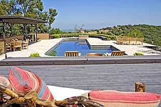 Serenity... 21901 Saddlepeak is an Architectural Estate sitting on 10.41 acres! in the Malibu Hills that commands sweeping ocean VIEWS of the Ocean & City lights. The 5 bedroom, 5 bath home is flooded with light and has park-like grounds including a 40 ft pool with a flagstone outdoor entertaining area POOL with fire-pit, and a lighted TENNIS COURT. This rare property is in 2 parcels with room for guest house, horses and stables. Very Easy to Show