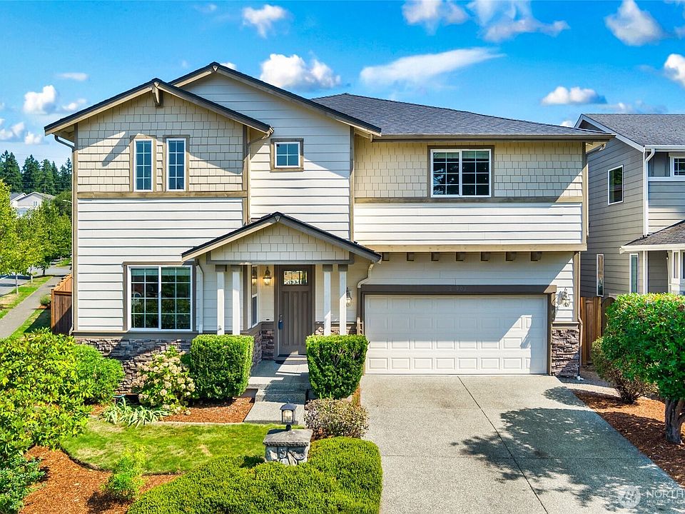 Situated on a corner lot across from a serene protected greenbelt, this one-owner home offers both privacy & charm. Inside, enjoy fresh interior paint, plush new carpet, & a brand-new roof—truly move-in ready. The dramatic 20-foot ceilings & open floor plan create a bright, welcoming atmosphere. The main floor features a versatile den/office, while upstairs you’ll find a spacious laundry room with sink, a large bonus room, & the impressive primary suite. The grand retreat includes a spa-like bath, private water closet, & oversized walk-in closet. Out back, an expanded patio with gas stub for effortless BBQs, surrounded by mature, low-maintenance landscaping. Coveted Northshore Schools, quick I-405 access & shopping. Pre-inspected!