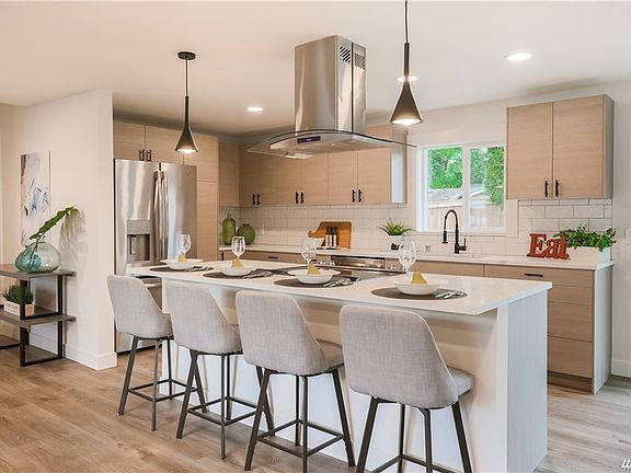 WOW! This one is a head turner!! Elegant redesign inside and out! Stunning panel siding with amazing glass garage door which silently operates on wi-fi. The house is spacious having 4 beds and 2 full bathrooms. This open plan layout gets lots of light and a lot of storage places. Sophisticated touches throughout the home such as a modern electric fireplace, backsplash in the kitchen, new quartz counter tops, ss-appliances, oversized island for extra counter space and/or for meal time, custom soft close cabinets, floating vanities in both bathrooms. Also, the house has a very spacious master bedroom with a walk in closet. Tankless water heater. Fully fenced yard with a deck. Close to all the amenities and shopping centers. Won't last long!
