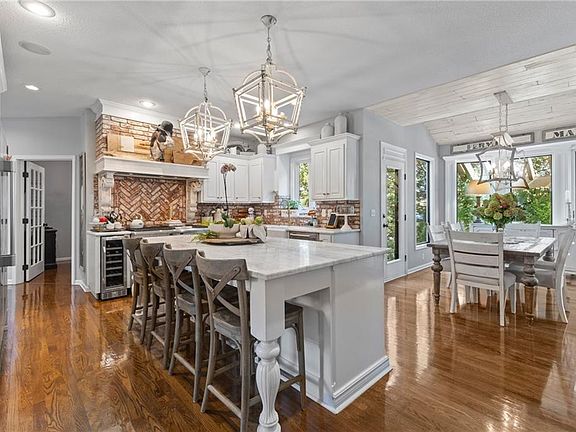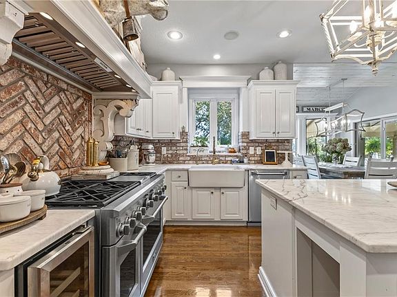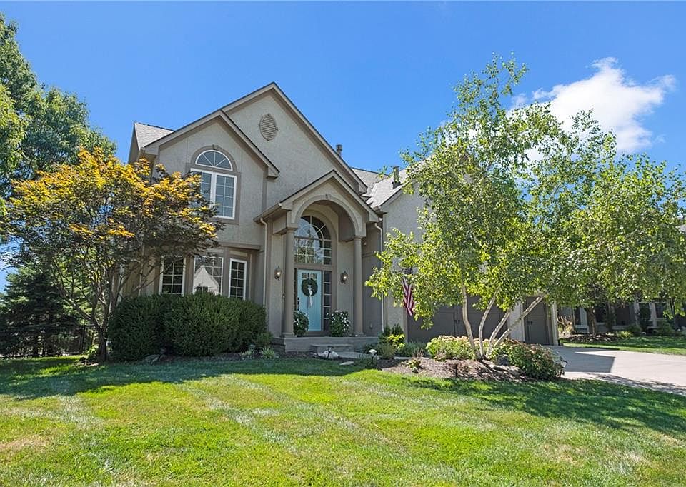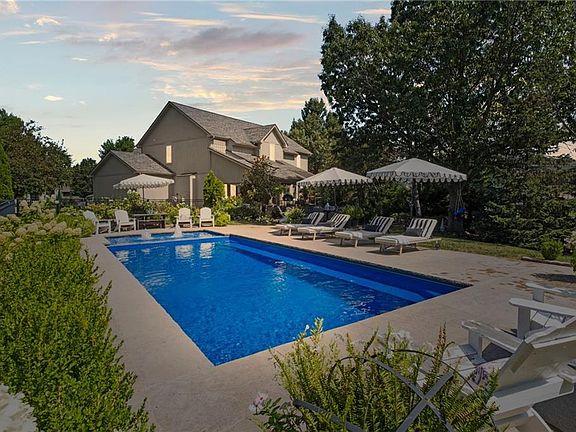 Welcome to this beautifully updated 4 bedroom, 5 bath (3 full / 2 half) residence offering 3,597 sq ft of refined living space in the Grey Oaks Subdivision of Shawnee. The inviting main level showcases gorgeous hardwood floors, a light-filled great room, a private office, and a chef’s kitchen appointed with beautiful quartz countertops, a 6-burner gas stove + griddle, Frigidaire Professional refrigerator, oversized island, and generous walk-in pantry. Upstairs, the primary suite retreat boasts a cozy fireplace sitting area, spa-inspired bath, and custom walk-in closet. Additional bedrooms include a private en-suite and a connected Jack & Jill, providing comfort and flexibility for family or guests. The finished lower level extends the living space with a large entertainment area and half bath — perfect for movie nights or casual gatherings. Step outside to a true backyard oasis featuring a private fenced yard, expansive covered and extended patios, a grilling deck, and a 3-year-old saltwater pool with fountains and splash pad that lights up beautifully on summer evenings. With a newer roof, cul-de-sac location, and convenient proximity to shopping, dining, and schools, this home combines modern updates, timeless finishes, and exceptional outdoor living.