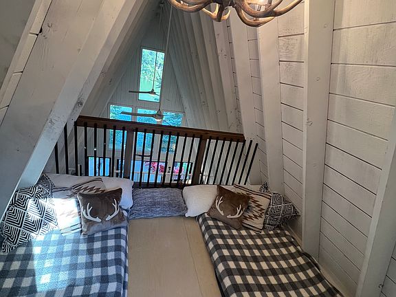 Venado Cabana- feel like you are on vacation after work. This lakeside AFrame has it all. 1.5 acres next to the beach. Paddleboards, Hotub, outdoor shower, grill and firepit, outdoor table for ten, indoor electric fireplace. Main floor has bedroom with twin bed that can convert into a king and full bath. The main level also has a twin daybed for extra sleeping area. The first loft has a the master king bed with gorgeous lake views and half bath. A third loft has two twin mattresses, tv and gaming consult. This property is fully furnished with seasonal rentals. (Minimum 3 months)