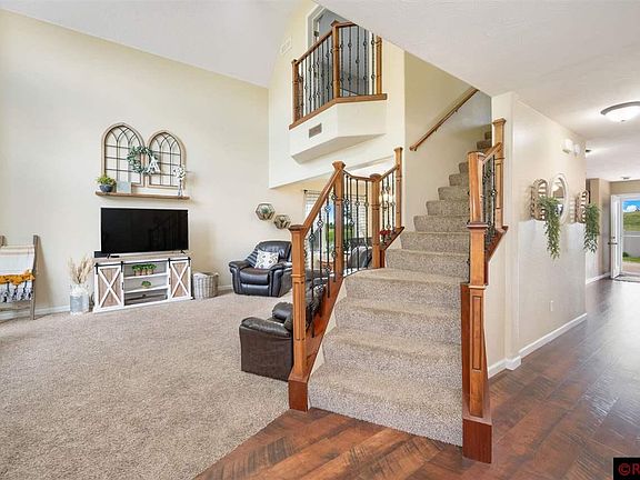 Welcome home to this one-of-a-kind, 2-story home in Upper North Mankato! This stunning property boasts a grand two-story living room with floor-to-ceiling windows, offering an abundance of natural light. Adjacent to the living room is a formal dining room that leads to an open-concept kitchen and family room. The modern kitchen features ample cabinetry with crown molding, sleek appliances, a center island with breakfast bar seating, granite countertops, a stone tile backsplash, under-cabinet lighting, and window bench seating. The bonus room offers a gas fireplace, large windows overlooking the backyard, and direct access to the backyard—ideal for entertaining. Additionally, the main floor includes a half bath and convenient laundry room with a utility sink just off the garage. Upstairs, the large primary suite offers a private full bathroom and French doors opening to the balcony overlooking the living room. Two more spacious bedrooms and another full bathroom complete the upper level. Outside, you will find a beautifully landscaped backyard with a vinyl privacy fence. Just beyond the fence is Benson Park with trails and playground equipment. This home also includes a fenced-in, extra concrete pad to the right of the oversized, heated two-stall attached garage, perfect for additional secured storage, a boat, or a camper. Noteworthy features include: in-floor heating throughout the main level, six-panel doors, Andersen windows, maintenance-free vinyl siding, a security system with outdoor cameras, and room to add a third stall to the garage. Don’t miss out on this wonderful home!