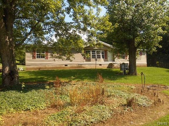 Outside Village of Cato, come & enjoy country living on 3.8 acres. Treed w/1700 sq. ft. of living area. 1999 Doublewide manufactured home w/3 Bed, 3 bath, Master bedrm /bath all spacious rooms, Cathedral ceilings, skylight, patio, ceramic tile flooring in laundry room recently updated, newer metal roof, enclosed front porch, 16 x 36 2 car garage.