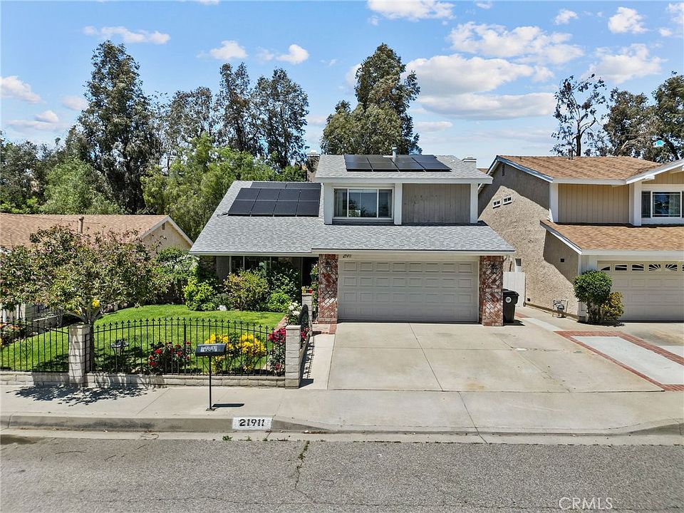 This beautifully upgraded Saugus home is packed with premium features and thoughtful details throughout. Recent upgrades include paid solar, a Tesla charger in the garage, and a fully remodeled open-concept kitchen featuring a stunning porcelain island, custom cabinets with lit displays, a Sub-Zero fridge that is included, Viking microwave, 48” Thor range with custom hood, wine fridge, coffee bar, and dual spice racks. Enjoy stylish new engineered hard wood flooring, modern stair railings, updated LED lighting throughout, and convenient under-stair storage. The spacious loft offers a flexible space that could easily be converted into a fourth bedroom. Comfort and efficiency are ensured with an HVAC system replaced in 2016, newer water heater, whole house fan, Nest system, reverse osmosis, and water softener. Outdoor upgrades include a new aluminum awning with fans, St. Augustine grass, sun shades, added rain gutters, a heavy-duty garden table, backyard shed, and mature peach and lemon trees. Security is top-notch with a Blink camera system and linked cameras. All this with a low HOA of just $84/month and no Mello Roos tax—making this home both a smart and stunning retreat.