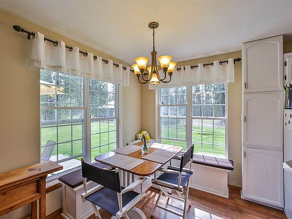 Private & Peaceful 4 bed, 4 bath home in Mead school district on nearly 5 acres! Main floor master bedroom has an oversized walk in closet with organizers/shelves, full bathroom and second closet. Enjoy movie nights in the comforts of your own gorgeous theater room. Cathedral ceilings, fireplace, bonus room, wood floors, & new hot water tank, are only a few of the great features of this home. Completely fenced, landscaped yard with sprinkler system, hot tub, over sized shop (42x36) with heated workroom.