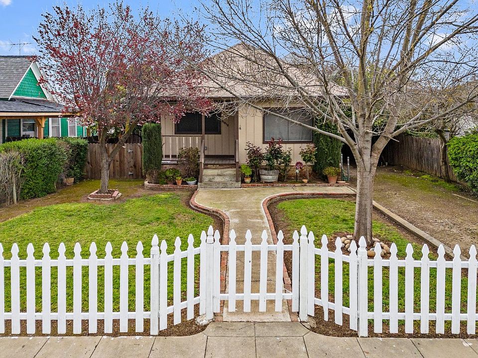 Welcome home to 21918 G St. This 3 bedroom 1 bath is the perfect starter home. Nestled in the small, quiet community of Crows Landing. Conveniently located just off Hwy 5 and near well-sought after Bonita Elementary School. Front yard is enclosed with white picket fence with a walkway leading you to a cozy front porch. As you enter the home you are welcomed with an open family/dining combo. Kitchen features stainless steel, 4 gas burner with griddle and granite counter tops. Home has a nicely sized laundry/mud room. Backyard boast with a nice selection of mature fruit and citrus trees such as olive tree, apricot, orange, meyer lemon, grapefruit and tangerine. Small workshop/shed perfect for storage or working on projects. Home also has alley access. You won't want to miss the opportunity to own this quaint home.
