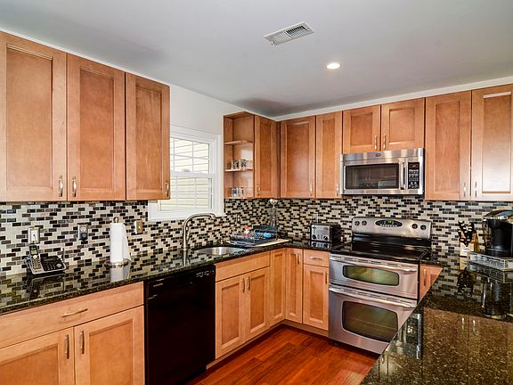 Beautifully update town home with 4 Bed / 2 FB / 2 HB, First floor family room/ BR w/ FP and half bath. Gorgeous updated kitchen with New Maple Cabinets, Stainless appliances,Tile Back spash, Hardwood flooring and Granite CT. Deck off kitchen backing to wooded area. First floor Laundry area, Private Patio and Fenced in Rear Yard. Garage and off street parking. A must see!