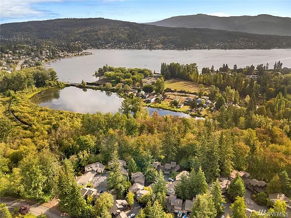Beautifully updated end unit condo just minutes from Lake Whatcom and steps from Whatcom Falls park trailhead! Features include recently updated kitchen with shaker cabinets, quartz countertops and new SS appliances. Bathrooms include new cabinets, flooring and quartz tops. Vaulted ceilings, custom stonework fireplace and new flooring throughout. Clubhouse features pool, sauna, hot tub and exercise room. Sliding glass door off living room accesses private patio, overlooking the lush forest.