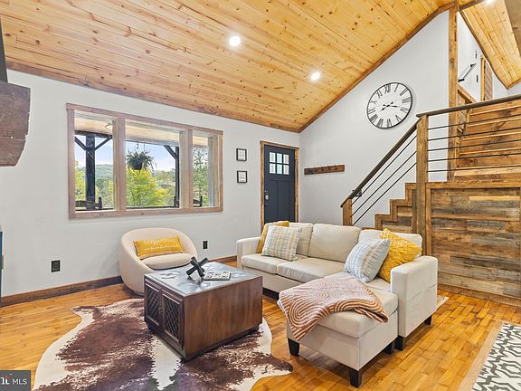 Discover your ideal retreat in Mathias, WV with this beautifully renovated 2-bedroom, 2-bathroom home nestled on a serene 0.5-acre lot with gorgeous mountain views from the covered front porch. This home masterfully combines rustic charm with contemporary comforts. The open-concept living area is bright and airy, featuring a versatile loft space perfect for a play area or additional guest sleeping. The modern kitchen is a chef's delight, showcasing stainless steel appliances, ample cabinet space, and generous countertops. The spacious main bedroom is bathed in sunlight and includes a convenient en-suite bathroom. This lovely home is an established and successful AirBNB rental, has all new systems, comes mostly furnished and includes a Google Nest system. Step outside to enjoy the large deck, hot tub and expansive yard with, ideal for both relaxing and entertaining. Picture yourself unwinding on the unique porch swing fire pit, watching fireflies dance in the evening sky. As an extra bonus there is a huge basement that would be ideal as a workshop for all those tinkerers out there. The artist and/or craftsman in the family can enjoy a separate and undisturbed space for all of their works-in-progress. This 1/2 acre property is conveniently located off of a paved road with easy access. There is plenty of space and privacy to create your own outdoor oasis with the hassle of caring for huge acreage.