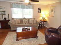 Traditional style home with many updates, 3 bedrooms, 2 bathrooms, 1432 sq. ft., heat pump, public water, vinyl siding, deck, solid surface counter tops, appliances, detached 2-car garage, 1 acre.