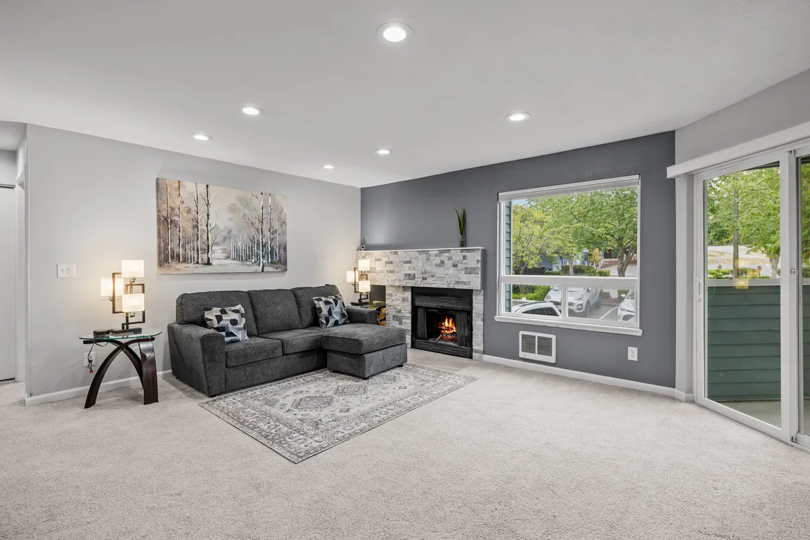 Covered balconyCozy wood-burning fireplaceFully updated kitchenIn-unit laundry