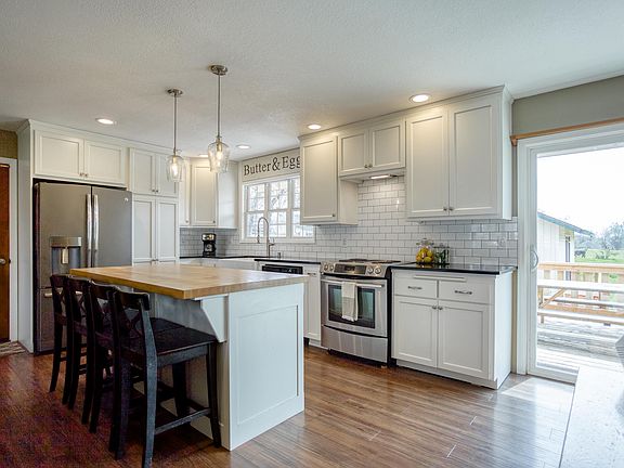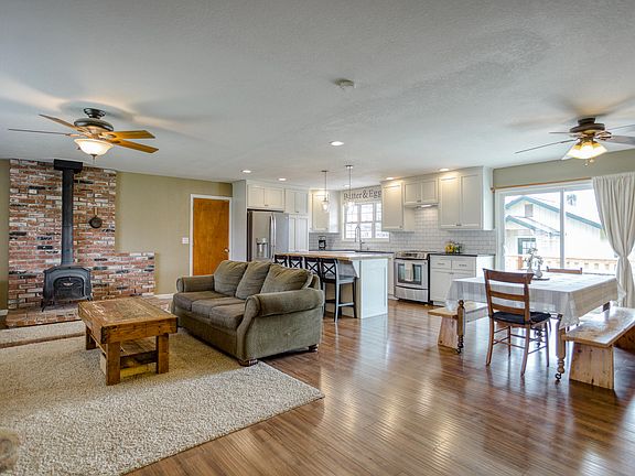 Wonderful modern ranch style, 3 bedroom 2 bath home along with a detached office/studio with 1/2 bath. All situated on 3 acres with room for the entire family! Home is 1384 sf and permited studio is 300sf 1700 sf TOTAL! Bring the animals, RV's, toys & 4H projects! Property is fenced, has a functional barn and the front pasture is irrigated. This spacious home