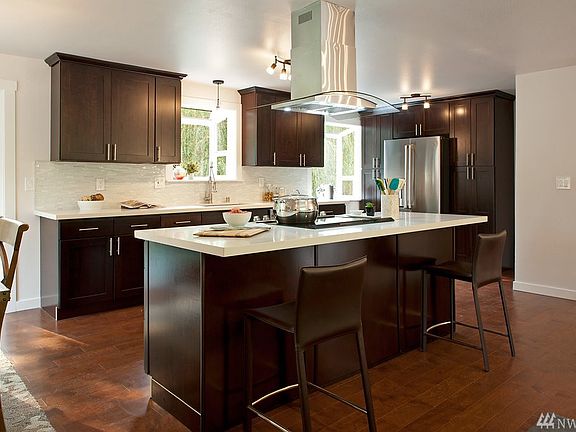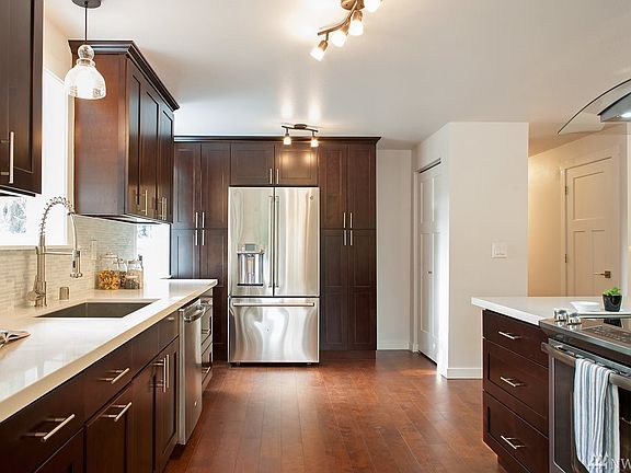 Imagine coming home to brand new hardwood floors & carpets, an open living & dining room, three bedrooms, a bonus room with wet bar & custom tile work throughout! You'll love the open kitchen + island with quartz countertops, gleaming high-end SS appliances & custom Shaker style cabinetry. This huge, fully fenced corner lot has beautiful, large trees, newly laid, thick grass and ready to plant garden beds. Wonderful home in a friendly, safe neighborhood in the great North Shore School District!