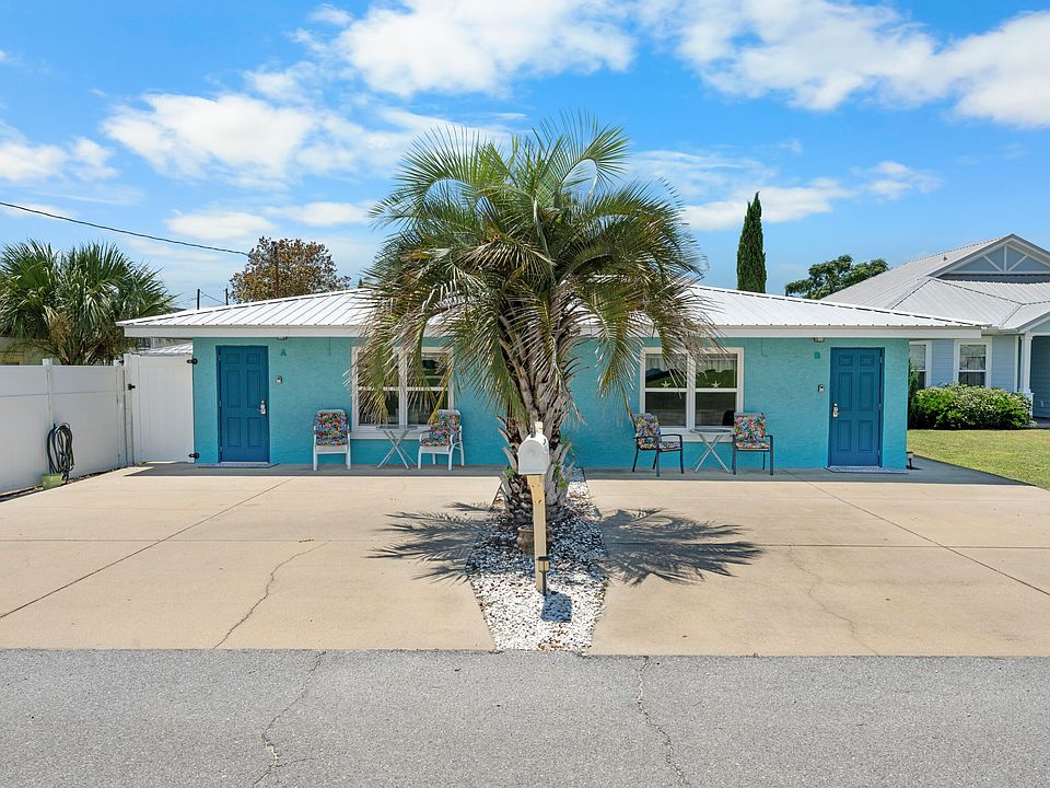 Welcome to 21927 Bataan Avenue, a charming and versatile duplex just 0.1 miles from the pristine Gulf waters on Panama City Beach's sought-after West End. Offering two self-contained one-bedroom, one-bath residences, each with 560 sq ft of thoughtfully designed living space, this property combines the relaxed feel of a coastal retreat with the income potential of a proven rental performer.Both units feature original terrazzo floors--a timeless, low-maintenance classic perfect for beach living--along with full kitchens, open living/dining areas, and pull-out sofas to accommodate up to four guests per side. The lock-out door between units adds valuable flexibility, allowing the property to be rented as two separate spaces or one larger home for extended families or groups. A shared laundry room provides added convenience, while parking for four vehicles ensures easy access for owners and guests alike.