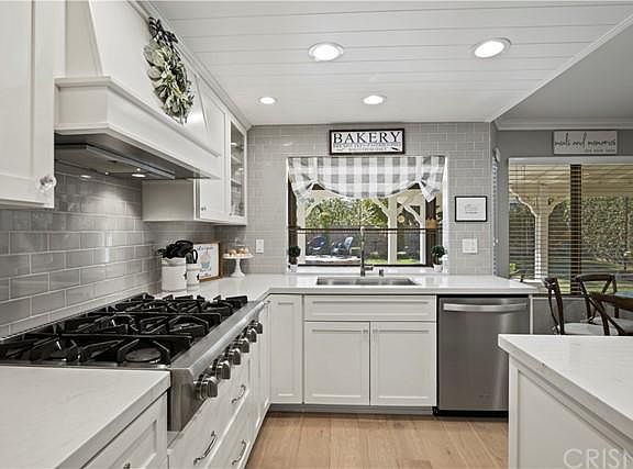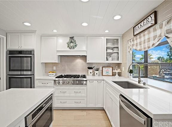 Welcome to this stunning, meticulously remodeled and maintained pool home in Wildwood Hills. This 5 bedroom home boasts crown molding, window blinds, gorgeous white oak flooring and custom baseboards that greet you at you enter the home. Gorgeous light and bright Kitchen has been remodeled with subway tile backsplash, stainless steel appliances, quartz counters, double ovens, Bosch microwave drawer, professional grade cooktop and sink and quartz center island. Kitchen opens to family room with fireplace and custom mantel. Downstairs bed and full bath for live in or guest. Custom area with wine bar with cooler. Main Suite has vaulted ceilings, plantation shutters and opens to bath with separate tub, shower and dual sinks, His and hers walk in closets. Super nice extra large bonus room/4th bedroom has mirrored closets. All new doorknobs and cabinet hardware throughout. Now enter your own entertainers backyard with big sparkling pool and spa and water feature. There is a pad ready to add your own fire pit to enjoy on those cold nights. Extra large Patio offers area to sit and enjoy the large grassy yard which is beautifully landscaped. Don't forget the gated 40 foot RV parking! Extra storage shed on side of the house. Newer HVAC and ducting, newer water heater, recently installed attic insulation with radiant barrier. Newer pool equipment and deck seal. This home has it all. No HOA. No Mello Roos!!!! Enjoy energy solar savings $$$$$$