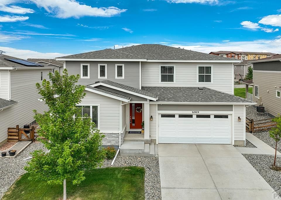 Stunning 2-Story Home with 3,031 Finished Square Feet, Spacious Living and Modern Upgrades! Why wait for a new build when you can move right into this beautifully maintained 2021-built home with all the bells and whistles already in place? Featuring 6 bedrooms and 3.5 baths, this home is designed for comfort and functionality. The main level offers 9-foot ceilings, a cozy living room with fireplace, a dedicated office, and a dining room that opens to a covered concrete patio, perfect for entertaining. The kitchen boasts quartz countertops, a gas stove, large pantry, and all appliances stay, with wood laminate flooring throughout. A convenient half bath and a full bathroom adjoining the second primary suite complete the main level. Upstairs, you'll find 5 bedrooms, including a spacious primary suite with ceiling fan, large walk-in closet, linen closet, and a 5-piece bathroom. Bathrooms feature quartz countertops, wood laminate flooring, and ceramic-tiled tub/shower areas. Additional highlights include a 2-car garage with built-in shelving and mudroom entry, window blinds/coverings, automatic sprinkler system, fully fenced backyard for privacy, central A/C for cooling in warmer months, and a crawl space for extra storage. This home truly combines modern elegance with practical living, offering everything you need without the wait of new construction. Don't miss your chance to call this exceptional property your own!
