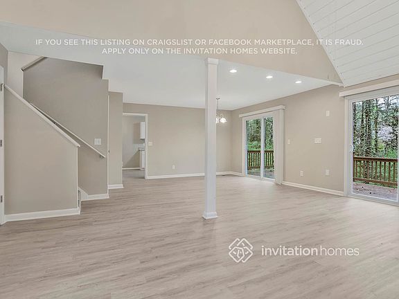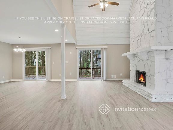Home Features and Amenities: Air Conditioning, Deck, Fenced Yard, Fireplace, Garage, Granite Countertops, Long Lease Terms, Luxury Vinyl Plank, Pet Friendly, Recessed Lighting, Smart Home, Stainless Steel Appliances, Vaulted Ceilings, W/D Hookups, and professionally managed by Invitation Homes.