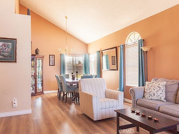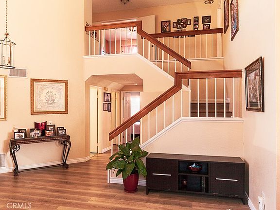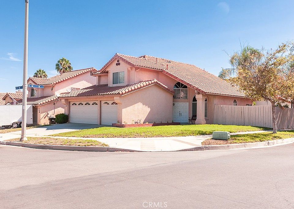 Welcome to this beautiful corner lot five bedroom three full bathroom home. Main floor offers one full bathroom and bedroom, with formal Living room/Dining room. Upon entrance you are greeted in the foyer by Cathedral ceilings and new laminate flooring and new carpet upstairs. Seperate family room. New renovated kitchen with quartz countertops. Upstairs, the primary bedroom offers a suite bathroom with a walk in closet. Sliding doors off the family room offers access to spacious back yard that provides plentiful space for entertaining. Additional property highlights include indoor laundry room, three car garage, new landscaping, no HOA/Mello roos. This home is situated in a convenient family-friendly neighborhood with outstanding schools, minutes away from area parks, shopping, and access to major freeways 15/91.