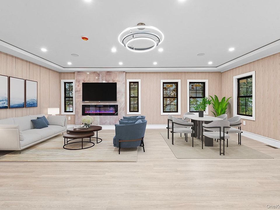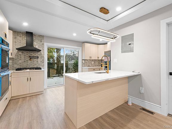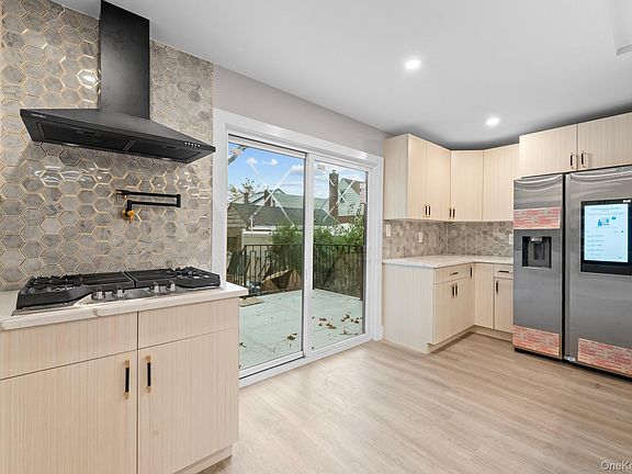 Open the door and enter an expansive sun drenched, massive formal living area which provides great space for entertaining. The living area boast designer LED fireplace, LED lighting, and surround sound blue-tooth speakers. The formal dining area overlooks the stunning kitchen any chef will love. Kitchen features floor to ceiling custom cabinetry, adorned with a full fleet of state of the art stainless steel appliances, equipped with island for bar stool seating and leads out into lush rear yard. Spacious bedroom and full bath on first floor.