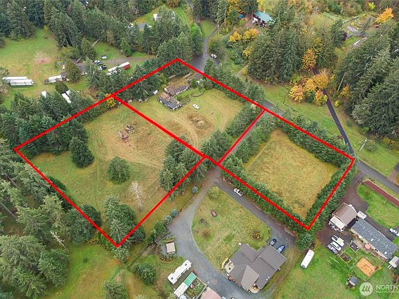 Discover three vacant lots tucked on a quiet, paved dead-end street in Spanaway. The main parcel spans 48,351 sq ft (1.11 acres) and includes a single-wide mobile home—providing water, septic, and power already on site. To the north, a front lot offers 41,382 sq ft (0.95 acres), while the south back lot stretches across 87,991 sq ft (2.02 acres). Together, that’s over 4 acres of level ground ready for your vision. Whether you’re planning a three-home build site or looking to personalize each lot to meet your needs, the groundwork is here. Come explore the potential and see what this rare opportunity has to offer. Quick access to Tacoma, JBLM, and commuting routes makes this a convenient location while still offering privacy and space.