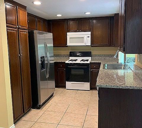 Beautiful tri level condo in desirable Warner Woods complex. Walking distance to The Village. New paint with dual pane doors & windows by MILGUARD w/ 3/16" thick tempered glass to reduce heat/noise. Ground level 2 car attached garage and bonus room with attached laundry with washer and dryer included. LR has solid oak floor, recessed ceiling lights, frplc w/ gas starter and sliding doors to enclosed patio. Granite counter tops in kitchen & 3 baths; all 3 bedrooms in upper level has high ceiling & mirror wardrobes. Kitchen has stainless steel wash sink, microwave, dish washer, range unit, garbage disposal, pantry and side by side 24.5cubic feet refrigerator and breakfast area. Formal Dining area has a wet bar and a private balcony. Master suite has walk in closet & mirrored wardrobes, lrg vanity, bath & a private balcony. $625/mo HOA dues include EQ Ins, 2 pool/spas, club house & exterior maintenance.