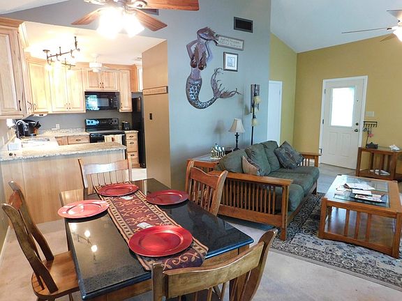 Fully furnished, move in ready, lake front home. Just bring your suitcase!!! This lovely 3 bedroom, 2 bath home has been updated with granite, beautiful custom kitchen cabinetry, updated bathrooms and more. Entire house and garage have just had the exterior freshly painted. Enter to a fabulous water view in the den with high vaulted ceiling. Entertain on the deck surrounded with shade trees. There's a fenced yard and fragrant rose bushes from the road to the house. Enjoy the two car garage with storage or work room, extra covered parking for a boat and additional paved parking outside of the garage for guests. The boat house has a single stall electric lift, a storage room and a spot to sit and enjoy cool evening breezes right on the water. Hurry and begin enjoying the lake this summer!! Also, an excellent opportunity for a turn key purchase for investors wanting lake rental opportunity right now!!