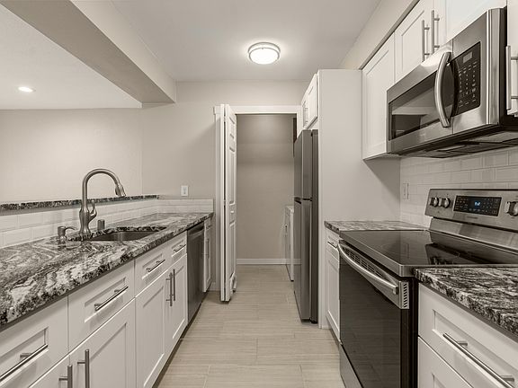 Gorgeous Remodel: The entire unit has been tastefully updated, featuring a kitchen with granite countertops, custom cabinets, and stainless steel appliances. The gleaming vinyl plank flooring throughout adds a touch of elegance.
