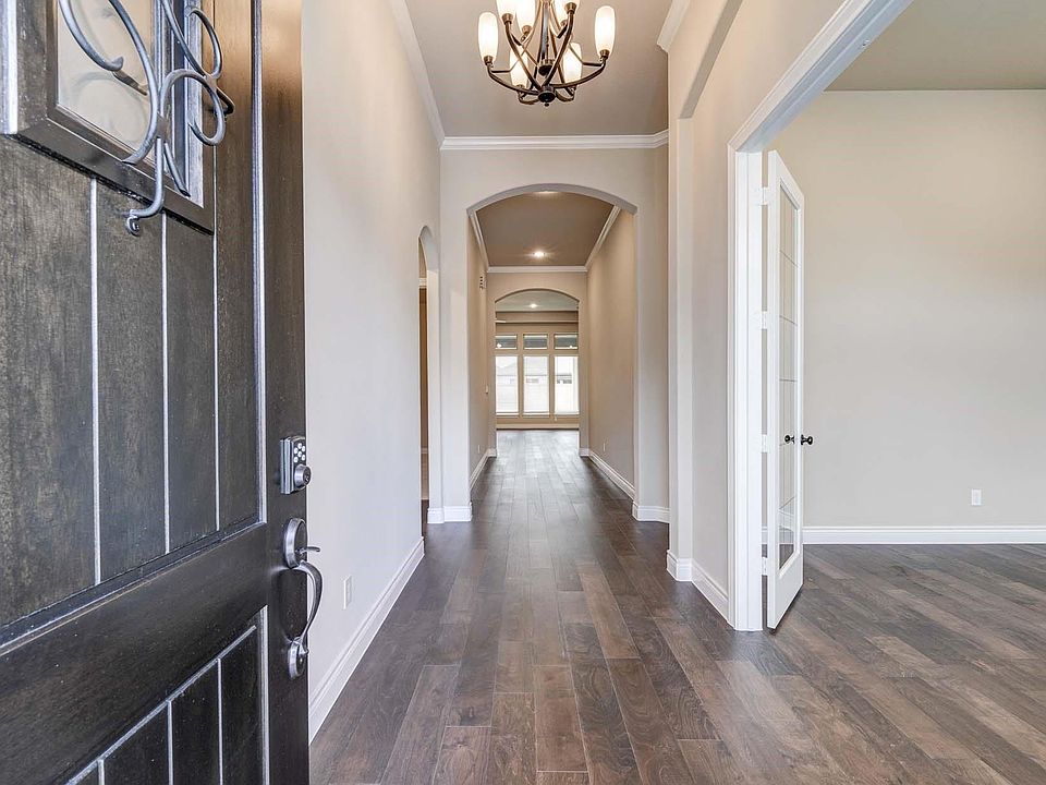 1-story floor plan features an open concept kitchen with 42" cabinets, built-in stainless steel microwave plus oven with separate gas cooktop. The large 22'x19' family room has 13' ceilings, a corner fireplace, and a full wall of windows. The master bath includes corner tub, separate shower, and a large walk in closet. Expansive 29’ wide covered patio overlooks a spacious backyard. Home is complete with a 3-car garage.
