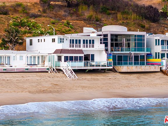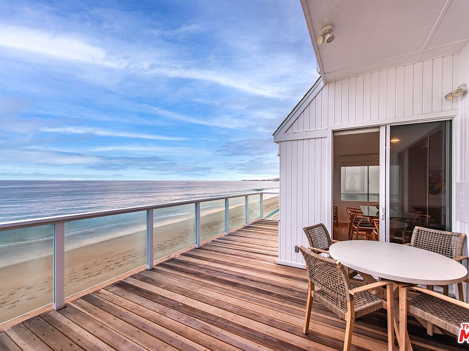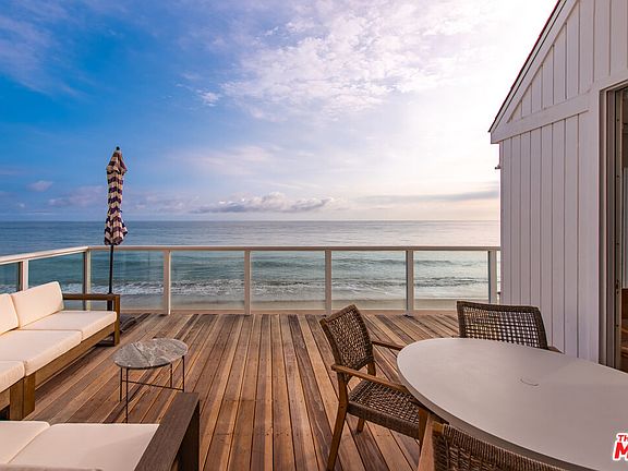 Discover the essence of Malibu living on one of its most coveted stretches of sand. This beachfront residence embodies the coastal lifestyle with expansive decks, abundant natural light, and panoramic ocean vistas. A spacious courtyard introduces the home, leading into the ground level's open-concept design where the ocean-view kitchen, living, and dining areas seamlessly connect. Floor-to-ceiling sliding glass doors open to a sweeping deck ideal for sunbathing, dining, and enjoying unobstructed views of the Malibu Pier, Catalina Island, and city lights by night. A guest suite with en-suite bath completes the main level. Upstairs, four additional bedrooms await, highlighted by the oceanfront primary retreat featuring a private deck, breathtaking views, a walk-in closet, and a sun-filled bath. The epitome of quintessential Malibu living.