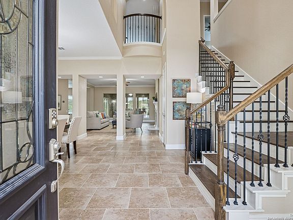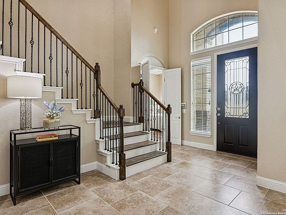 Don't miss this special home in the gated community of Havenwood at Hunters Crossing. This impressive 2-story residence offers an exceptional blend of space, flexibility, and luxury with 4500+ sq ft of thoughtfully designed living space on a 1-acre corner lot backing to a peaceful greenspace. Featuring 5+ spacious bedrooms and 5 full bathrooms, the home is well suited for multi-generational living, extended guests, or those who simply value room to spread out. Two bedrooms are conveniently located on the main floor, including a generously sized primary suite and a secondary bedroom with an adjacent full bath. The main level is designed with ease of movement and everyday comfort in mind, offering wide doorways, minimal thresholds, lowered light switches, and hard-surface flooring throughout (no carpet). The well-appointed main-level bath features a walk-in stall shower-providing comfort, convenience, and long-term flexibility across a variety of life stages. The staircase leads to a central landing that opens to a game room or additional family room, creating a versatile upper-level hub. The second floor is ideal for remote work, homeschooling, or study needs, featuring secondary bedrooms, a dedicated office, multiple study or homework areas, and abundant storage-perfectly designed to support productive work-from-home setups or college-aged occupants. The heart of the home is ideal for both everyday living and entertaining, featuring a chef's double-island kitchen with double convection ovens, a hybrid gas and induction cooktop, and thoughtful touches such as a pot filler and conveniently placed controls. All rooms are hardwired with Cat 6 connections and a centralized hub, delivering seamless connectivity for TVs, computers, and gaming systems. Outdoor living is equally impressive with a commercial-grade outdoor kitchen. The Summer Room is plumbed for a hot tub, plus there is an additional storage/workshop building with the height and space to accommodate a car lift, recreational vehicles, lawn equipment, or future entertaining use. Additional highlights include a 4-car garage, two RV outlets (30 and 50 AMP), a whole-house Generac generator, and a 500-gallon propane tank for added peace of mind. Havenwood at Hunters Crossing offers residents access to two pools, a park and playground, and multiple sport courts and fields. Ideally located near New Braunfels favorites including the Historic Gruene District, Creekside shopping, and excellent medical facilities. Zoned to highly regarded Comal ISD schools (Hoffman Lane Elementary) with easy access to Texas State University, this home offers an ideal balance of top-tier education, convenience, and long-term value. Whether you are seeking a private retreat, a flexible multi-generational home, or a property designed to adapt gracefully over time, this residence delivers exceptional value and livability. See Special Features flyer for additional details.